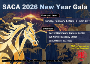 The San Antonio Chinese Alliance (SACA) proudly presents its 2026 New Year Gala at the Carver Community Cultural Center—a vibrant celebration showcasing the richness of Chinese culture through music, dance, and community spirit. This major annual event brings together hundreds of performers, volunteers, and guests for an unforgettable evening of artistry and cultural exchange.